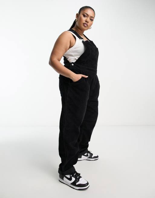 DTT Plus - Ivy - Salopette a coste nera a fondo ampio con tasche