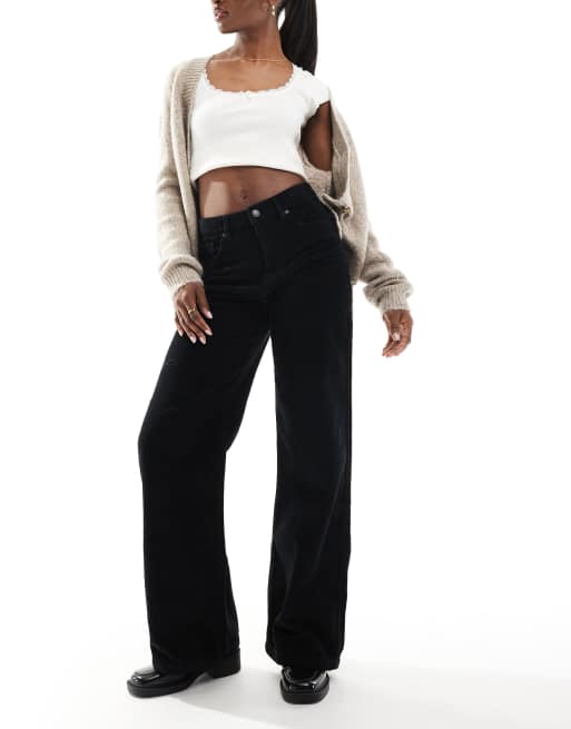 DTT - Silvia - Pantaloni in tessuto a coste neri con fondo ampio