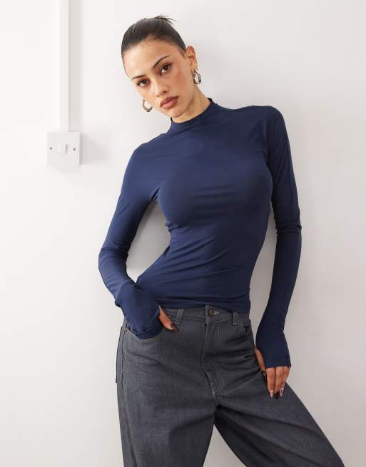 Dr Denim - Aria - Maglietta slim blu morbida a maniche lunghe