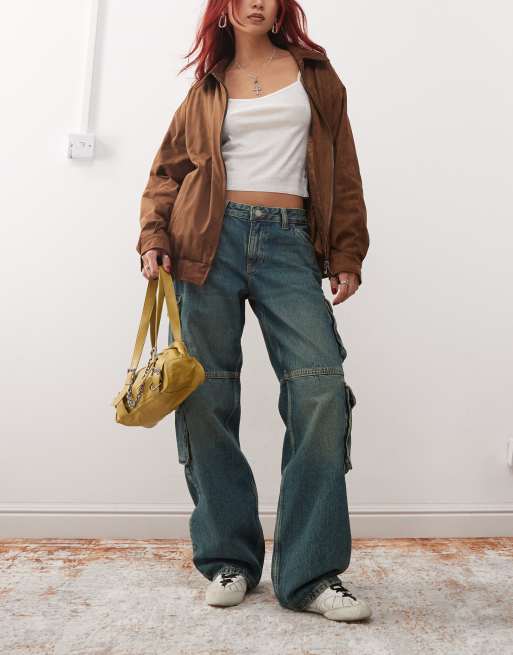 Dr Denim - Hill - Jeans a fondo ampio e vita bassa comodi blu verde medio lavaggio stream con tinta e tasche cargo