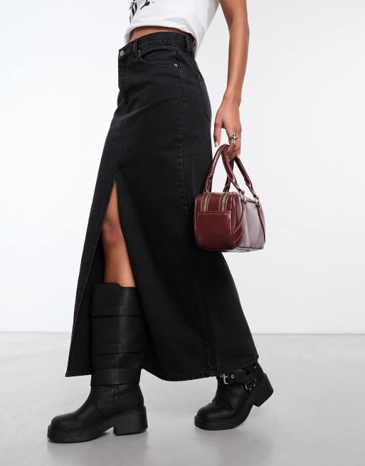 Dr Denim - Myra - Gonna lunga in denim nero tinto con spacco sul davanti