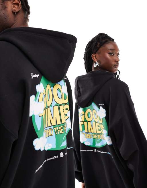 Dr. Denim - Siri - Felpa con cappuccio unisex oversize pesante nero sporco