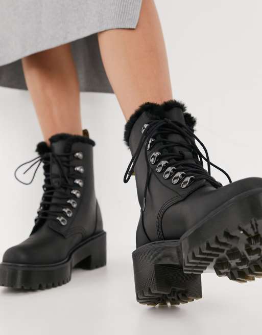 Dr Martens - Scarponcini con tacco con interno in pelliccia neri