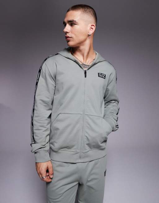Armani - EA7 - Felpa con cappuccio verde salvia con fettuccia del logo e zip in coordinato