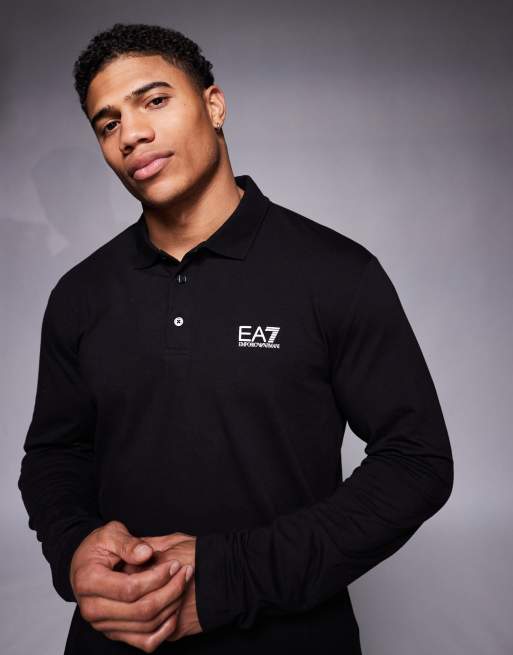 Armani - EA7 - Polo a maniche lunghe nera con logo oro