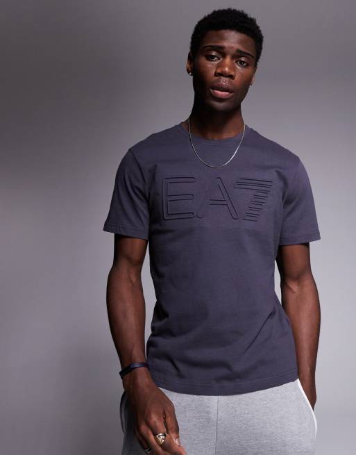 Armani - EA7 - T-shirt grigio scuro con logo centrale in rilievo