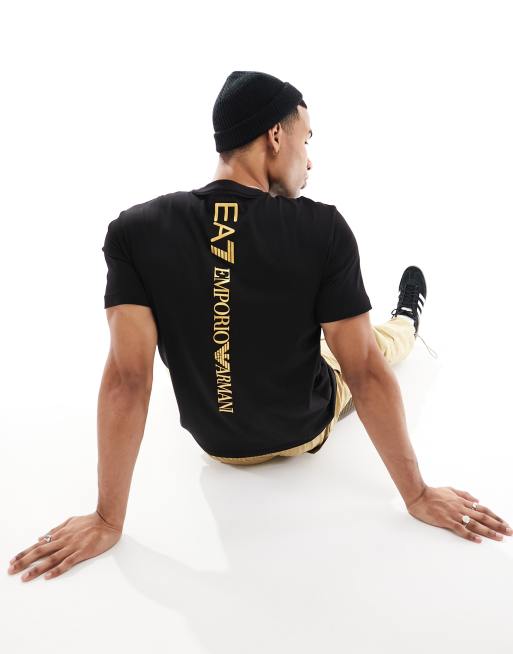 Armani EA7 - T-shirt nera con logo dorato piccolo
