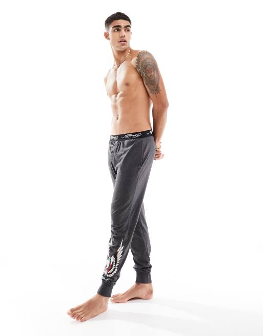 Ed Hardy - Dibney - Pantaloni da casa grigi con stampa tattoo