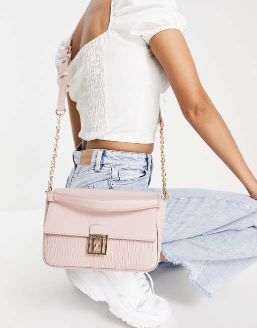 ELLE - Borsa a tracolla rosa con catenina e patta