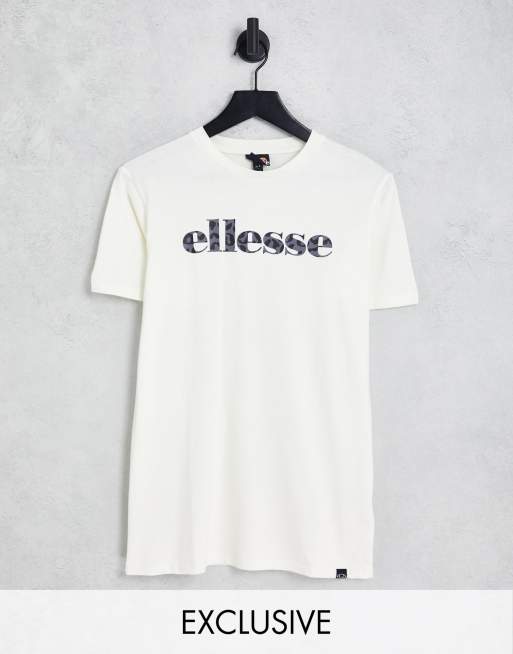 ellesse - T-shirt boyfriend bianca con stampa leopardata del logo