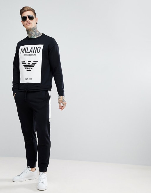 Emporio Armani - Tuta nera con logo gommato