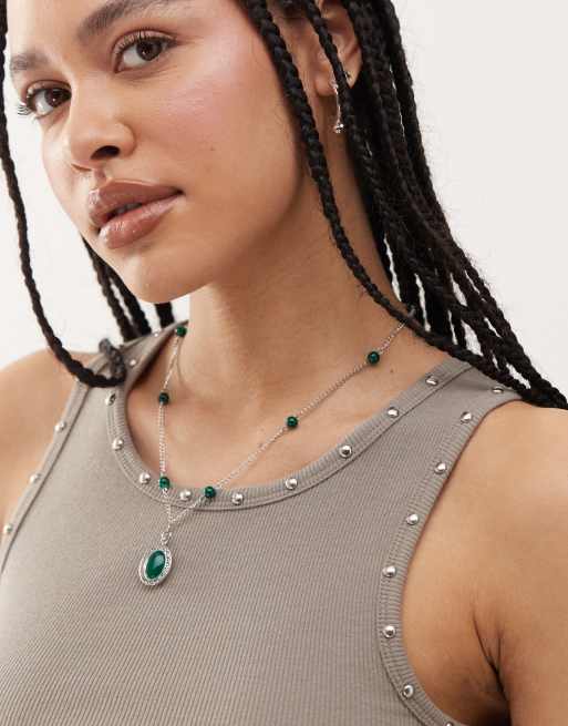 En Route - Linh - Collana in argento sterling con perline e pendente smeraldo