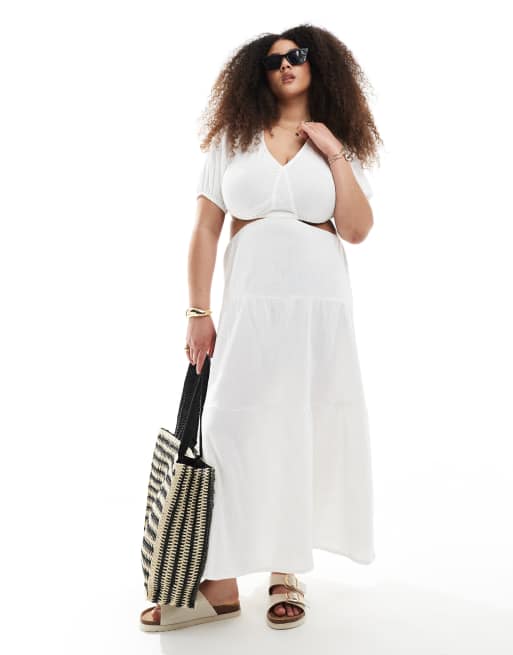 Esclusiva Esmée Curve - Vestito lungo da mare bianco a balze con cut-out