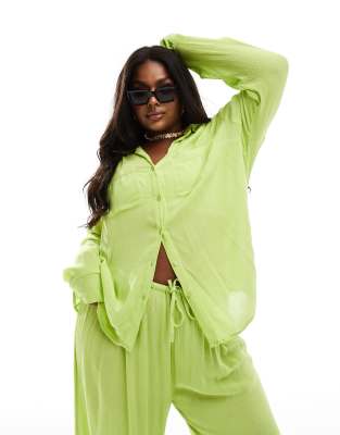 Esmée Curve - Camicia da mare oversize a maniche lunghe lime in coordinato