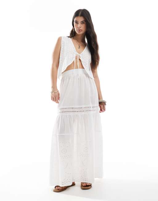 Esclusiva Esmee - Coordinato da mare a balze bianco con pannello in pizzo