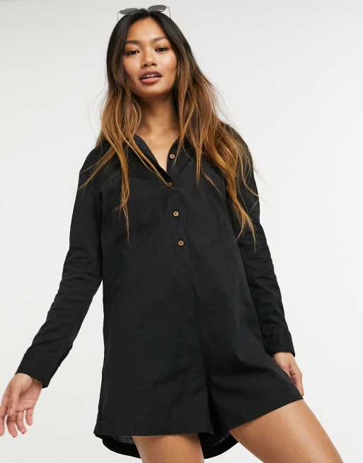 Esclusiva Esmee - Tuta corta da mare a maniche lunghe nera con bottoni