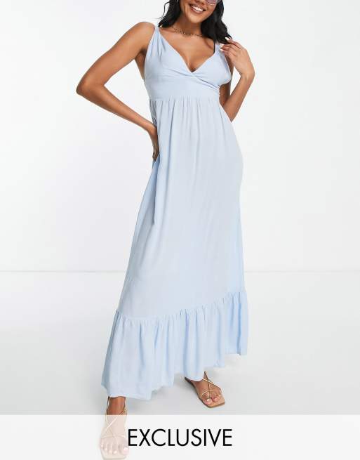 Esclusiva Esmee - Vestito estivo da mare blu con scollo profondo