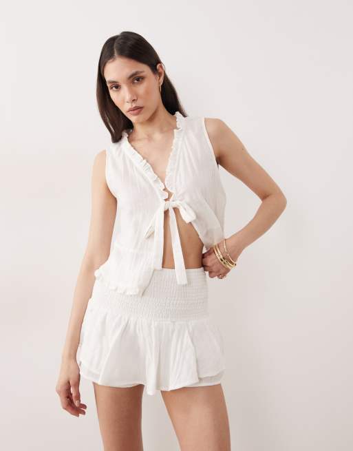 Esmée - Coordinato da spiaggia bianco con finiture a volant