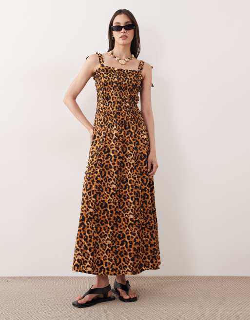 Esmée - Vestito da mare lungo con spalline annodate e stampa leopardata