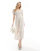 Esmée - Vestito lungo da spiaggia a quadretti bianchi e beige con maniche arricciate a sbuffo