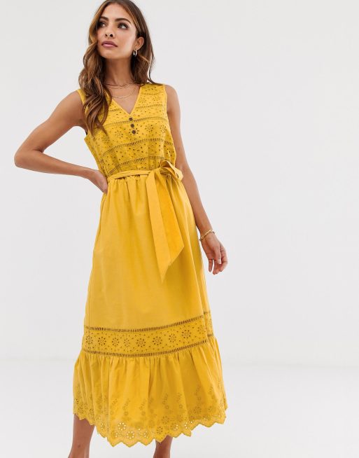 Esprit - Vestito midi allacciato in vita in pizzo giallo