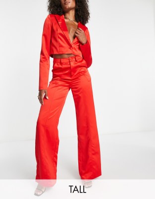 Extro & Vert Tall - Pantaloni a fondo extra ampio in raso rosso in coordinato