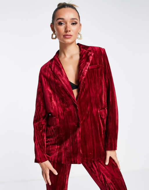 Extro & Vert - Blazer oversize in velluto rosso rubino in coordinato