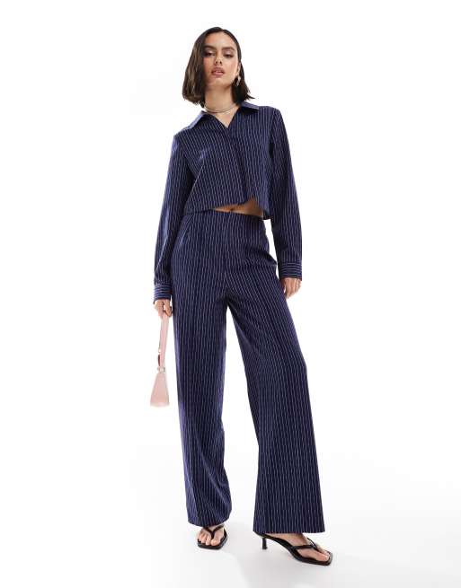 Extro & Vert - Coordinato con camicia con colletto e pantaloni blu navy gessato
