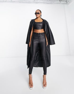 Fae - Coordinato nero in pelle sintetica spalmata con top a corsetto e pantaloni