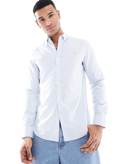 Farah - Brewer - Camicia slim fit blu a righe