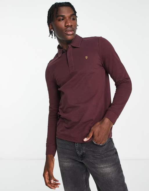Farah - Haslam - Polo slim fit a maniche lunghe in cotone rossa