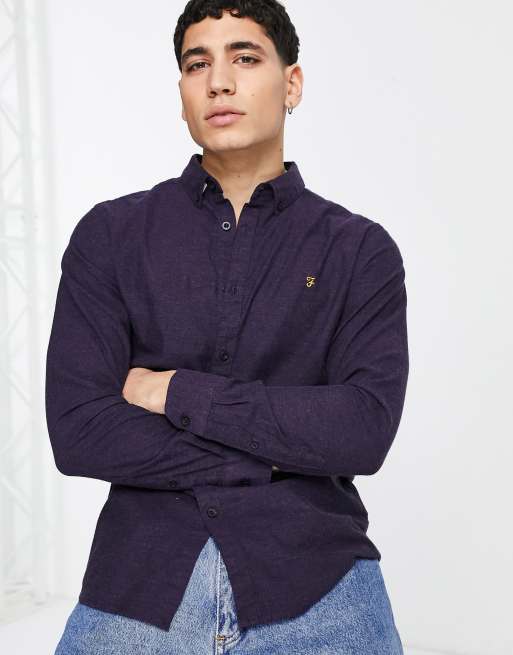 Farah - Steen - Camicia a maniche lunghe spazzolata color fico