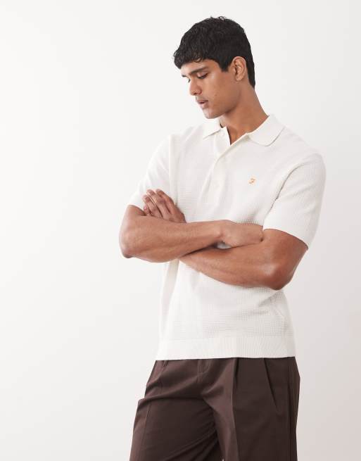 Farah - Thornley - Polo a maniche corte in maglia bianca con logo