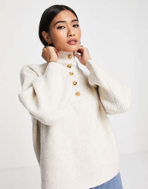 Fashion Union - Maglione con colletto con bottoni in coordinato