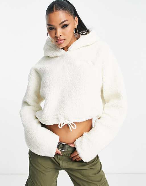 Fila - Felpa in pile borg écru con cappuccio e logo