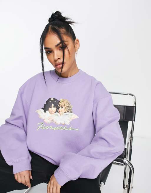 Fiorucci - Felpa comoda lavanda con grafica di angeli