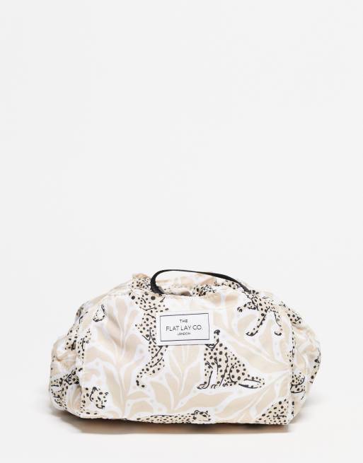 Esclusiva The Flat Lay Co. X ASOS - Trousse con coulisse tonalità neutra con ghepardi