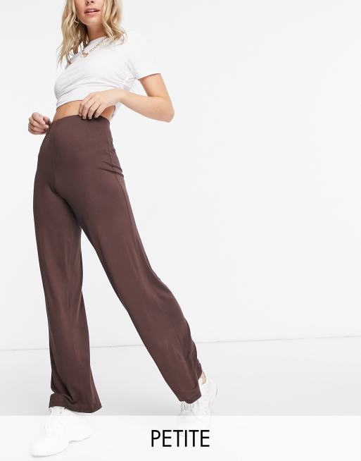 Flounce London Petite - Pantaloni basic a vita alta con fondo ampio marrone cioccolato