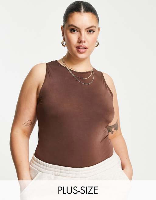 Flounce London Plus - Body accollato e sinuoso color cioccolato