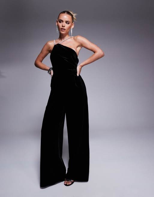 Forever New Petite - Tuta jumpsuit monospalla nera decorata con strass