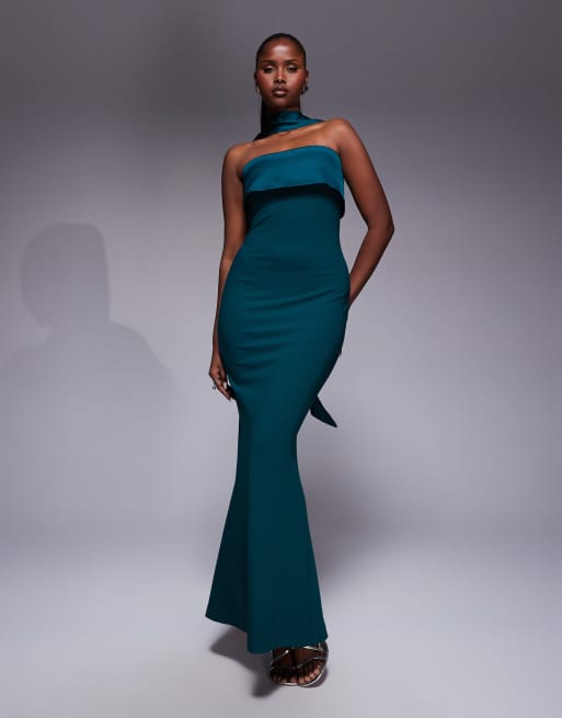 Forever New - Vestito lungo senza spalline verde smeraldo con fondo a sirena e sciarpa al collo