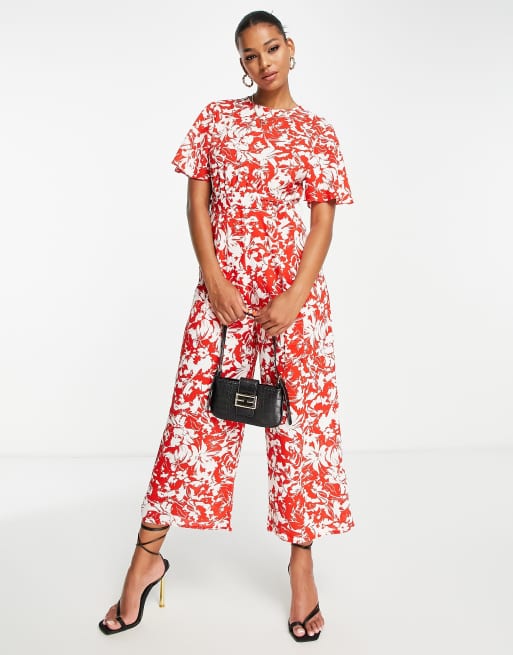 Girl In Mind - Tuta jumpsuit stile culotte rossa a fiori