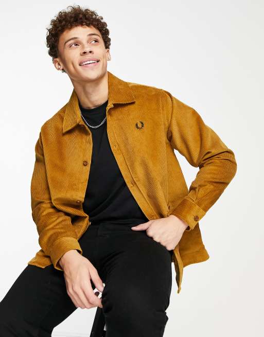 Fred Perry - Camicia color cuoio in tessuto a coste