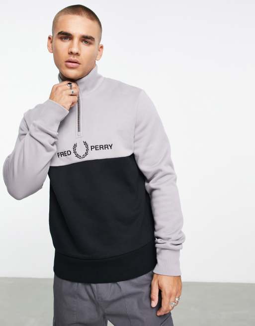 Fred Perry - Felpa nera con zip corta e ricamo