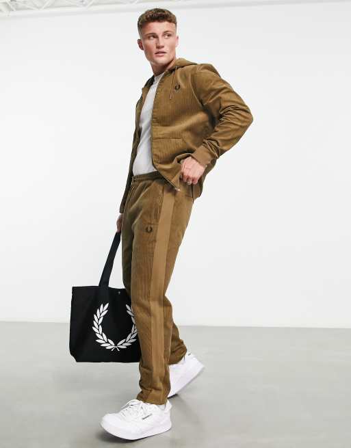 Fred Perry - Joggers affusolati in velluto a coste color cuoio