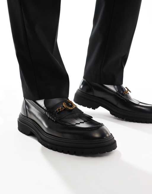 Fred Perry - Mocassini unisex neri in pelle con catenina