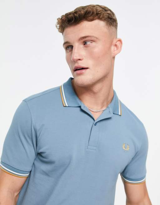 Fred Perry - Polo blu con doppia riga a contrasto su maniche e colletto