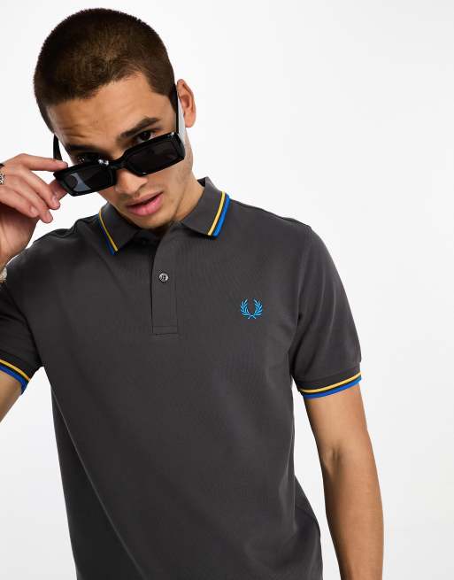 Fred Perry - Polo grigio scuro con doppia riga a contrasto sui bordi