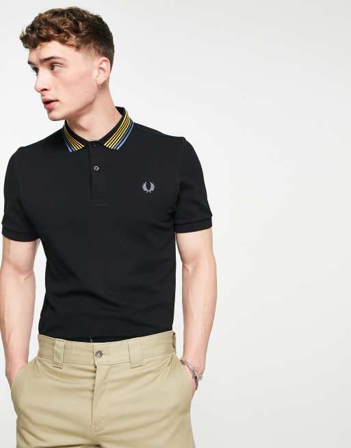 Fred Perry - Polo nera con colletto a righe