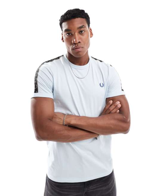 Fred Perry - T-shirt azzurra con fettuccia a contrasto